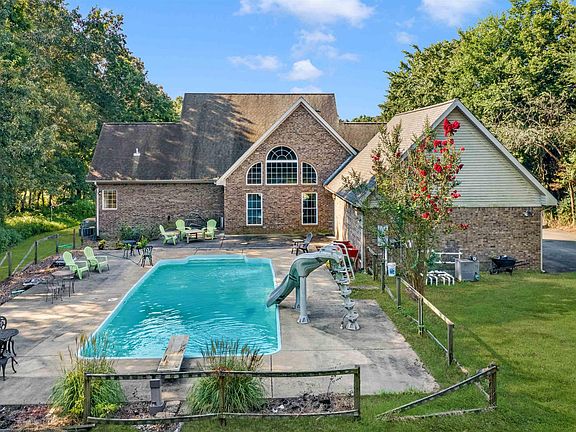 This Elegant Brick Home Is Nestled In A Quiet Country Setting And Features A Dramatic Curved Staircase In The Foyer, Formal Dining Area, And Convenient Breakfast Nook Adjoining The Open Kitchen Area. With Ample Cabinets And Granite Topped Island With Gas Range, This Is A Cook's Dream. The Vaulted Two-story Living Room Offers Views Of The Private Backyard And In-ground Pool, Complete With Slide And Diving Board, Great For Entertaining Or Private Enjoyment. The Tiled Sunroom Serves As Guest Entrance And Exits To The Pool And Garage. The Main-floor Spacious Primary Suite Offers A Sitting Area, Sunny Windows, And A Luxurious Bath With A Venetian Marble Shower And Jacuzzi Tub. A Mezzanine Overlooks The Living Room And Grand Entryway, Adding Architectural Charm With Bedrooms And Guest Bath. Enjoy Outdoor Living With An Oversized Deck—perfect For Entertaining With Plenty Of Grassy Yard Beyond For A Variety Of Activities.