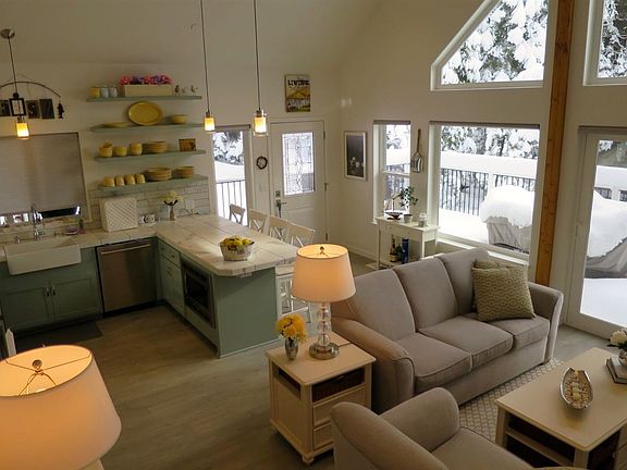 This adorable LACC home has just been finished, and comes fully furnished and ready to go for it's new owner! Backing up to the wooded LACC Greenbelt area, the large synthetic deck will offer great afternoon naps in peace and quiet. Inside, the open floor plan boasts: vaulted living room ceilings, tiled kitchen/bathroom counters, Bosch appliances, farm style sinks, tasteful wood laminate flooring, a travertine tiled hearth w/ Xtrordinair gas fireplace, and a European style washer/dryer unit. Other upgrades include air conditioning, a tank-less water heater, enclosed eaves and a composite siding for extremely low maintenance. The spacious loft easily sleeps a crew if needed. A central location to the great LACC amenities, with a ton of privacy out your back door!
