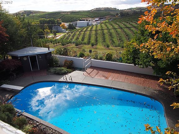 Great summers start in this backyard pool paradise! 3 bedrooms and 2 full baths on the upper level with a kitchen/dining room that leads to the upper level deck over looking the pool & backyard nieghboring orchards. Dining room adjacent the kitchen has a wall of built in storage. Large lower level family room with a fireplace leads to the patio and access to the pool.
