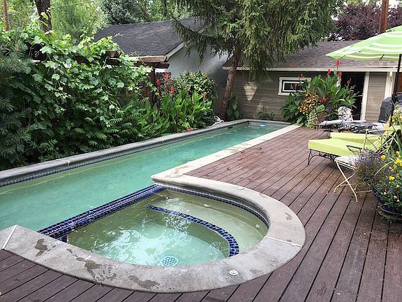 Imagine living in a classic craftsman style bungalow in Historical East End Boise! This home, built in 1915, features original leaded glass windows, built-in bookcases, craftsman style pillars in the entryway, and a wrap around porch allowing you to enjoy relaxing beautiful mornings and evenings. This home benefits from rarely available geothermal heat, including a heated lap pool and hot tub conveniently located just steps from the back door and allowing for year-round exercise and fun. Two bedrooms are located on the main floor and an additional bedroom in the finished basement next to the rec. room. The home’s floor plan is perfect for hosting parties with an elegant dining room and the newly remodeled, bright and open kitchen overlooks the back yard and features granite counters, new Bosh dishwasher and Jenn-Air downdraft range/grill/griddle, new cabinets with pull-outs, and pantry with original leaded glass doors. The bathroom has been updated with double sinks and a freestanding claw-foot soaking tub. This yard is an eye-catcher with mature trees and professionally landscaped English and Japanese gardens in front and back. The back yard is also fenced and very private.