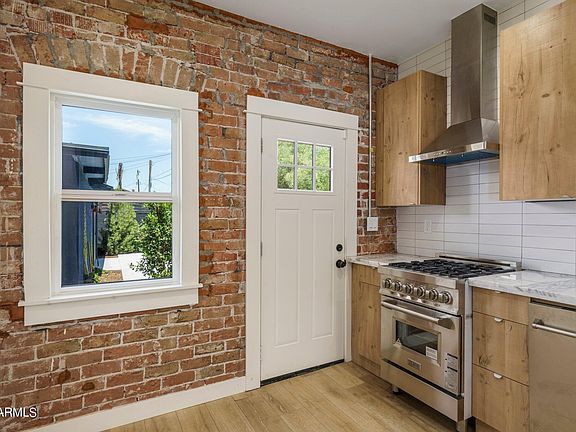 Custom Designer Bungalow walking distance to everything Roosevelt Row has to offer. Huge front porch , 2 bedrooms , a bathroom featuring large shower and beautiful tile. Wood floors , EXPOSED BRICK and crisp white trim including window sills are in many rooms. Indoor washer/dryer included. Exterior patios are private and lush. There is a Casita with fireplace, cool kitchenette plus bedroom with exposed bathroom ! Gated back yard , driveway and paver parking area in front. Charm !!!