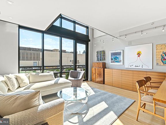 Chic loft-style condo centrally located in the heart of DC! This meticulously-designed PENTHOUSE condo is an open and bright two-level condo with floor-to-ceiling windows, PRIVATE BALCONY with city views, and stylish features at every turn. Upon entering the condo, you'll notice the layout is ideal for entertaining with a powder room on the main level and a spacious living room with a dining area that features a $10,000 custom table that conveys with the unit! Additionally, you'll love preparing meals in your gourmet kitchen with waterfall marble counters, high-end stainless appliances, and chic custom cabinetry. Off the living room is your PRIVATE BALCONY with amazing city views, durable flooring, and boxwood panels for additional privacy. Up the stylish staircase featuring a frameless glass railing system, you'll find the expansive bedroom suite. This loft-style bedroom is massive with space for a nice home office and sitting area, plus beautiful views from the floor-to-ceiling windows. You'll love the large walk-in closet with custom shelving and cabinets. Down the hall is the spa-like full bathroom that features a long double vanity with ample storage and counter space, two backlit LED mirrors, plus an in-unit washer and dryer. Past the vanity, you'll find the separate glass shower and lovely soaking tub - it's the perfect place to relax and pamper yourself after a long day! Located in the equally stylish Ventana Condominium, this pet-friendly building has an onsite concierge, fitness center, library, and two onsite unloading areas for residents to use. Convenient monthly rental garage parking just two doors down! The location really can't be beat - within a few blocks of award-winning restaurants, a plethora of nightlife options, theaters, Metro, and everything DC has to offer!