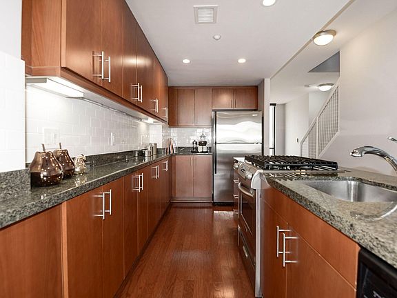 This is a unique two floor apartment in an incredible location. Total privacy in the living room and dining area, separated from the upstairs bedrooms. This condo feels like a townhouse in the city, not a one level condo. The living room, dining room, large foyer (room for a desk here; this can be a separate study area) and kitchen are at the entrance level (9th floor). One large master bedroom is upstairs with 3 large closets and a large bath. The second upstairs bedroom also has a full bath, and large closet. There is a separate attractive powder room with a pedestal sink on the main floor. Large storage closet on the main floor with room for coats, shelving, and room to store large items such as camping gear, luggage, ski equipment. Additional wine bar added to kitchen cabinets. The condo building has a concierge, building security, a large lovely lobby area, and is in an unbelievable fabulous location. It is 1 block from the Verizon center, the Shakespeare theatre, the Smithsonian Portrait gallery, metro, shopping, and many excellent restaurants. A car is not needed as you can walk to everything, and you are only one block away from a main Metro station at the Verizon center. You won't find anything as nice as this condo in the amazing Penn Quarter location. Come and take a look. owner pays condo fee, which includes trash and water; renter pays electric and TV/Internet