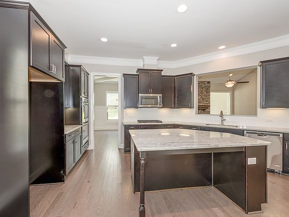 Backs to 12th Fairway with trees to buffer. Lancaster plan offers custom 2 Faux Wood Blinds throughout home, see-thru fireplace w/gas logs between vaulted Great room & spacious sun room. Oversized large Master Bedroom features hardwood floors. Private cul-de-sac w/wooded parkway in front & golf course behind. Move-In Ready! This stunning home is located directly across the parkway from spacious Clubhouse w/wrap around porch featuring abundant Adirondack seating. Laurel Canyon amenity also features an oversize pool, playground, tennis courts, fire pit & basketball court.