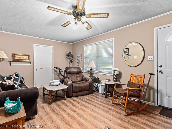 Nestled on five spacious city lots, this adorable cottage home in Arkoma offers the perfect blend of comfort and functionality. The property offers an outdoor shop divided into three sections, including one with a concrete floor and ample shelving, ideal for great storage solutions. Inside, the cozy living space features beautiful wood flooring, new carpet and ceramic tile, creating a warm and inviting atmosphere. The home comprises two comfortable bedrooms, two well-appointed bathrooms, and a versatile flex space that can be used as an office or an additional bedroom (without a closet). The eat-in kitchen provides a delightful spot for family meals and gatherings. A nice size pantry offers ample space for food and small appliances. Significant updates enhance the home's appeal, including new waterproof wood plank flooring and carpet, a covered back deck, and newer windows with heat reflection. The exterior walls were upgraded with foam insulation before vinyl siding, ensuring energy efficiency. Additionally, the roof was replaced in 2022, and a brand-new hot water heater was installed in 2024, providing peace of mind for years to come. This charming cottage is the perfect place to call home, offering a blend of modern updates and classic comfort in a spacious outdoor setting with plenty of room for a garden and even adding another small home possibly. Call for your appointment or get with your realtor and make one before it is gone! Located in an RD Loan eligible area.