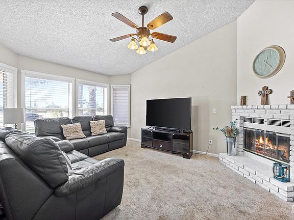 This desirable Highland Knolls neighborhood is ready to welcome you home. Featuring an exceptional floor plan accommodating 3 bedrooms, 2 bathrooms, and 1,529 square feet. Equipped with gated RV parking, solar, and newer on-trend flooring. Natural light floods the spacious and updated kitchen which is conveniently adjacent to the oversized dining area, complete with a beautiful second fireplace. Majority of windows are showcased with custom blinds. This delightful home is located on a manicured easy to care for lot, featuring a large sparkling swimming pool and removable safety gate, for added convenience. Call your Realtor today to see all this home has to offer.