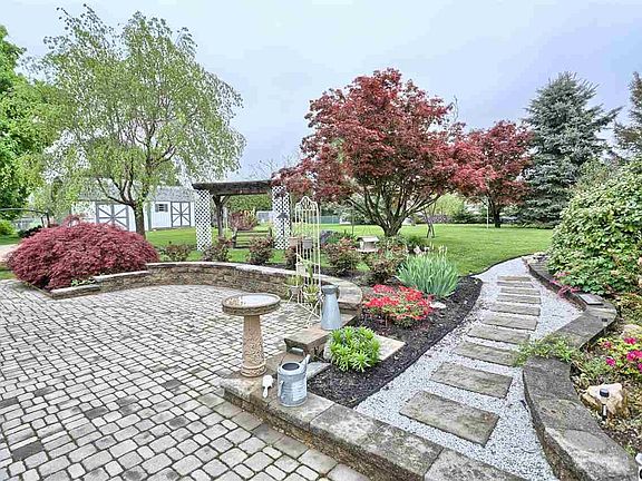 Prepare to be impressed - inside and out. East Penn rancher on nearly an acre of level, lush low maintenance landscaping w/impressive patio area designed for entertaining. Family room addition w/cathedral ceilings/skylights/gas stove and loads of natural light. Updated kit w/tile floor and tile backsplash, updated main bath, Andersen windows, hardwood floors in BR's. Finished LL w/Franco Belge stove. Generous covered front porch. Detached 28' x 32' garage with electric and water. See agent remarks.