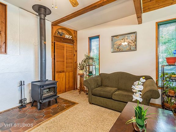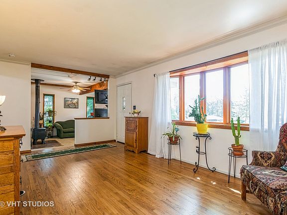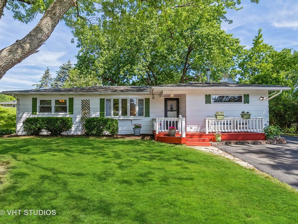 This ranch home is bigger than it looks and has so much personality! Three bedrooms and 2 full baths. Not only has a good size living room, but a separate family room as well. Hardwood in most of house. Lots of windows including two garden windows. Wood burning Ben Franklin fireplace in family room. Kitchen has been remodeled and has both an eating area and breakfast bar, pretty tile work and ceramic flooring. Separate laundry room. Master bathroom with whirlpool tub. Front porch and large fenced in yard with an extremely roomy deck. Garage insulated and heated. Chain O'Lakes and Fox River launch access nearby. Johnsburg school district. Home warranty included!