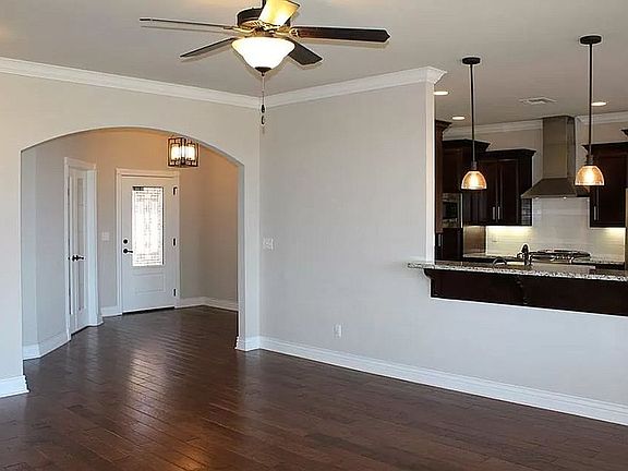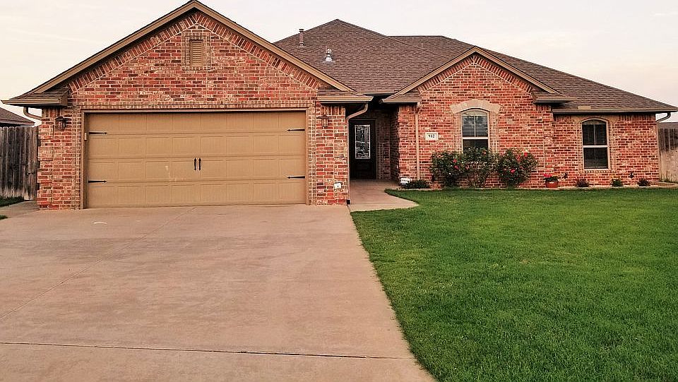 Beautiful, well-maintained home w/exceptional location in a lovely neighborhood. Custom-built home boasts beautiful tile floors & hardwood throughout main living area. Home also features a large open concept kitchen w/dining area, family rm w/gas fireplace and custom built-in media cabinet designed for clean TV mounting. The kitchen boasts modern design w/granite counters, a tile backsplash, & custom cabinets including special storage for baking pans & large appliances. Amenities include a moveable island & upgraded stainless steel appliances. The master bath has custom tile, jetted tub w/double vanity granite countertops and separate shower. Large Master closet features built-in storage & pass-through cabinetry to laundry rm. Carpeted bdrms w/built-in storage shelving in closets for excellent storage. Upgrades include whole-home water softener, a reverse osmosis water filtration system in kitchen, rain gutters & in-ground tornado shelter.