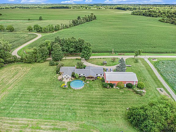 Whether you're hosting grand celebrations or seeking a peaceful retreat, this home offers the perfect blend of luxury and comfort. Offering 10-bedrooms, 3.5 baths, great room with vaulted ceilings, multiple fireplaces, and partially finished basement. Don't forget the large kitchen and 2 extra family rooms. Heated 40x72 pole barn is ideal for hobbies, extra storage, or workshop, and also includes pool house with extra bathroom. Enjoy the 2 serene acres with ample space for gardening, recreation, or simply soaking in the sparkling pool. Maintenance isn't overlooked, with septic tanks recently serviced and a new grinder pump installed for peace of mind. Updates in 2021 consist of seamless gutters, new septic/ transfer pump/grinder, and tank. Updates in 2020 consist of above ground pool, huge cover back porch, carpet in 4 bedrooms, both central AC/ furnace, roof, and removed all sky lights. Don't miss the chance to own this extraordinary property - schedule your tour today and start envisioning your new lifestyle! This company makes no warranty or representations about the contents of this data including room sizes & sq. footage. It is the responsibility of the parties looking at the property to satisfy themselves as to the accuracy of this information. Taxes were obtained from the local assessor and the taxes could change for the buyer after a closed transaction.