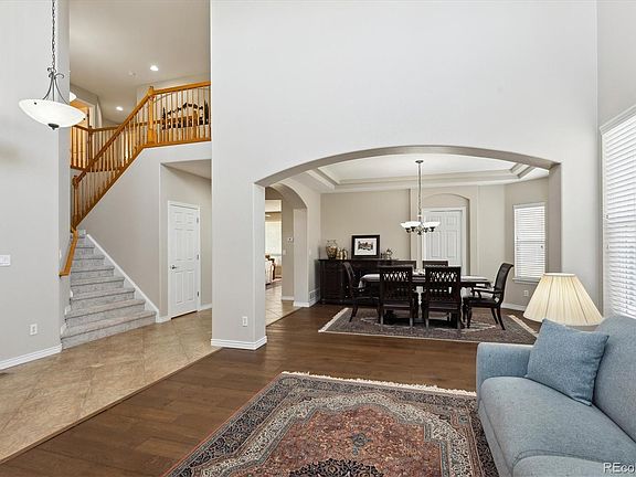 Fabulous one owner home in Castle Rock's premier neighborhood, Sapphire Pointe! Welcome home to this 4 bed, 4 bath plus separate office home on a large flat, over a quarter acre, lot tucked away at the back of the subdivision. New interior paint! New carpeting! Dual zone HVAC & dual hot water heaters are just some of the extras that you love about this home. Walking up to the front door, enjoy your covered front porch area perfect for a morning cup of coffee. The foyer greets you with vaulted ceilings, fresh paint throughout and a combination of engineered hardwood floors & oversized tile. The living room boasts walls of windows and perfect morning light. The formal dining room goes into the chef's kitchen through swing door. Chef's will love the kitchen featuring tons of storage space & cabinets, center island, gas cooktop, double ovens, under cabinet lighting, separate pantry & sunny kitchen nook. The family room overlooks the spacious backyard & covered patio. The dual sided fireplace flanks both the family and office spaces. The main floor office could become a 5th bedroom since it has its own closet. The oversized laundry w/cabinets & utility sink along with a separate powder room complete the main floor. Going upstairs, the spacious primary suite includes engineered hardwood flooring, separate sitting area w/fireplace along w/en suite 5 pc bath. The primary bath includes a huge walk-through closet, separate linen closet, dual vanities, soaking tub and separate shower. Going down the hallway, 2 bedrooms share a jack-n-Jill bath both with their own walk-in closets. There is an additional bedroom & full bath upstairs. The finished basement is a huge flex space for working out, watching TV, playing games or whatever! There are 2 separate unfinished spaces that could be used for storage, workshop or another bedroom if needed. This is the ideal location near the clubhouse and pool! Don't wait, see this home today!