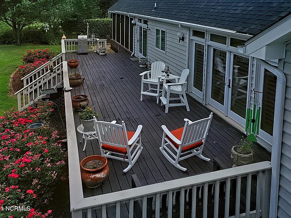 You will LOVE the beautiful Golf Course setting of this ONE LEVEL home on the 7th fairway in the established subdivision Brandywine Bay! 3BR/2.5BA open floor plan with large Sunroom, hardwood floors, 9' ceilings, plantation shutters, & huge new deck coming soon! The entry has charming covered brick paver front porch complete with porch swing. Kitchen has huge double pantry and new KitchenAid cooktop! New roof 2018. Newly conditioned/encapsulated crawlspace June 2021. The gorgeous golf course views can be enjoyed in Master Bedroom, Living Room, Kitchen sink, Breakfast nook, Sunroom, and spacious deck!