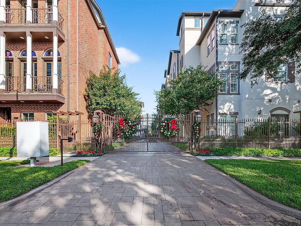 Welcome to Manors on Lovett Boulevard, an exclusive gated community of just 12 desirable brick townhomes. Enjoy the enchanting New Orleans-style courtyard, adorned with inviting benches, all in the heart of Montrose. The downtown view from the terrace is the best in town. High-end finishes, hardwoods. Gourmet island kitchen with SS appliances, butler's pantry w/wine fridge, granite in kitchen & in all bathrooms, balcony overlooking beautiful courtyard, fantastic 15 X 12 rooftop deck with downtown views. elegant primary bathroom with large shower and 6 ' jetted tub, lots of built-ins, arched entryways, laundry room with sink. Wonderful Location, walk to some of the best Montrose has to offer. New Roof 2025