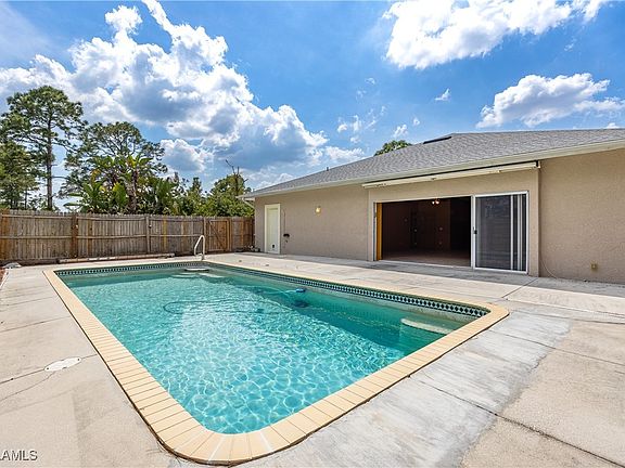 **THIS POOL HOME SITS ON A HALF-ACRE LOT AND IS READY FOR YOU TO CALL IT HOME** 1-YEAR HOME WARRANTY INCLUDED - MANY UPDATES FOR WORRY-FREE LIVING** This well-maintained 3 bedroom, 2 bathroom pool home offers comfortable living on a spacious half-acre lot in central Lehigh Acres. You'll find it's practically located, providing easy access to Fort Myers, everyday shopping needs, local schools, churches, and a variety of dining options. As you step inside, a welcoming foyer leads you into a generously sized family room, designed with an open layout that seamlessly connects to the kitchen and dining area. From the dining area, sliding glass doors open onto the private, fenced-in pool and lanai, creating a perfect space for outdoor relaxation and entertaining. The property also features a sizable backyard, offering ample space for various activities. Practical updates to the home include a roof replacement in 2021, a hot water heater installed in 2018, a relatively recent HVAC system, and a newer pool pump, ensuring efficient pool maintenance. This home is ready for immediate occupancy, offering a practical and convenient lifestyle. If you're looking for a solid home in a convenient location, this property is worth considering. Make an offer today.
