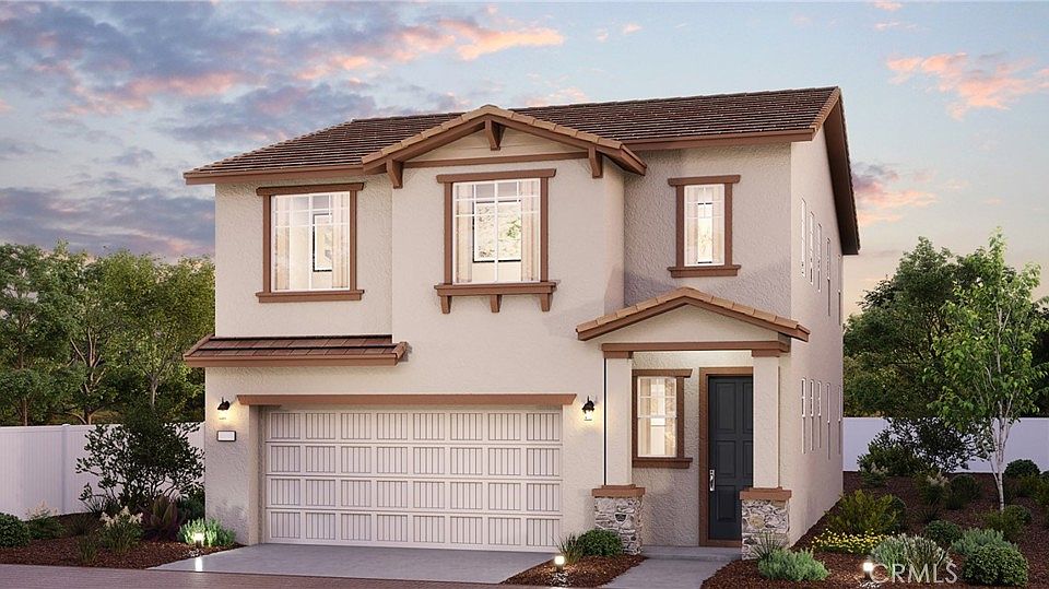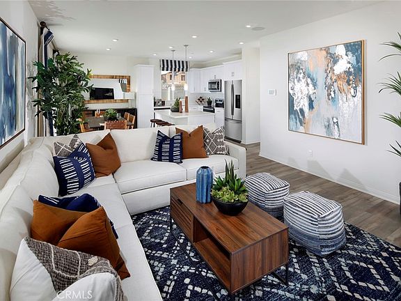 This Plan 1 features a dramatic two-story exterior with it's charming front porch and sun drenched entry. Once inside, main-floor highlights include a spacious great room and a well-appointed kitchen with luxury vinyl plank flooring and designer selected quartz countertops leading into an elegant dining area. Upstairs, you’ll find three comfortable bedrooms, including a spacious primary suite with a oversized walk-in closet and an attached bath—boasting dual vanities, a tub and a walk-in shower. This homesite has it all...don't miss this opportunity! Experience the lifestyle in Lake Elsinore. Amenities include a gated dog park for your furry friends, children's play area for anytime of year and BBQ outdoor picnic area for the entire family! Easy access to major FWYs and close to shopping centers.