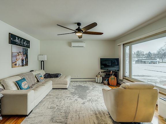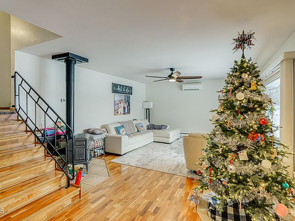 Looking for a move-in ready home with tons of natural light, updates and no across the street neighbors? Through the beautiful front door you'll immediately see the large living room windows facing Lions/Hillside Park and your large front yard. Enjoy cozying up to the gas fireplace or get a snack from your large, open and updated kitchen with an island, storage, and washer and dryer. Upstairs you'll find updated carpet and paint in the 3 bedrooms and a remodeled bathroom. Down a few steps you'll find a large living room, 4th bedroom, 3/4 bathroom and a door to your patio, greenhouse, and 2 stall heated & insulated garage with extra storage. The final level downstairs is a large storage area. Other updates include hardwood floors, steel sidings, updated windows, mini-splits for AC and more. Call your favorite agent for a showing today!