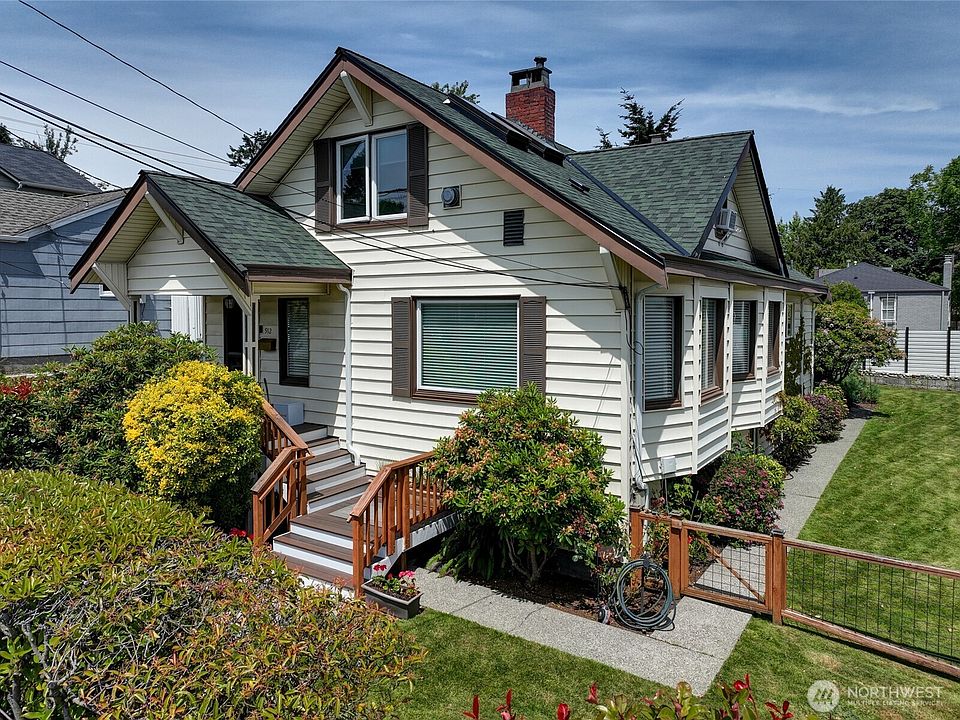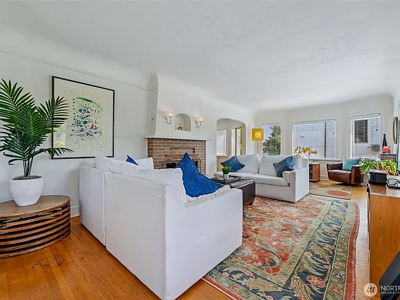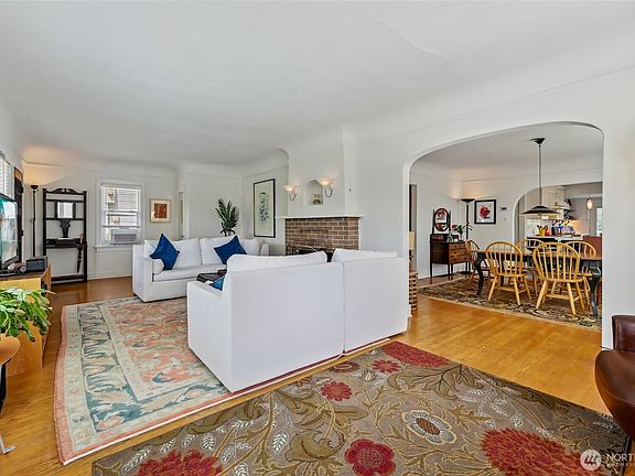 Craftsman Styled Home In Quiet Neighborhood! Parklike Grounds Are Fully Landscaped & Fenced! Oak Harwood Floors greet at the front door and continue throughout the main floor. Formal living room with wood/brick mantled fireplace & dining room can each handle your largest of furniture. Chef sized & appointed kitchen! 2 good-sized bedrooms & full bathroom complete the main level. Upstairs primary suite is huge/bedroom includes a sitting room-den, large 3/4 bath & massive walk-in closet. Basement has large guest bedroom with 3/4 bathroom, utility area, full height-useable-dry-basement for storage. Very private entertainment sized patio is great for summer parties/BBQ's/alfresco dining! Newer roof & furnace. Minutes to Green Lake, I5, shopping!