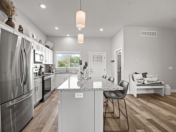 This gorgeous 3-bedroom, 2.5 bathroom home nestled on a quiet street overlooking the lake offers breathtaking views and a well-thought-out layout. Step inside to discover an inviting space, seamlessly connecting the living room, kitchen, and dining area perfect for entertaining and maximizing the incredible waterfront vista. The well-appointed kitchen features modern appliances, ample counter space and an oversized island perfect for culinary adventures. A cozy living area complete with an electric fireplace offers a comfortable space to relax and entertain. The primary suite in this home is a luxurious retreat with serene water views. It features a spa-like bathroom that exudes relaxation and indulgence. This spacious bathroom is designed for ultimate comfort, offering amenities like a soaking tub, a walk-in shower, and finishes that create a soothing atmosphere. But that's not all—the primary suite boasts not one, not two, but three closets, providing ample storage space for your wardrobe and personal items. Whether you prefer a walk-in closet for your shoes and accessories, a spacious wardrobe for clothing, or a dedicated storage area, this suite has you covered. Of course the icing on the cake is the captivating view of the water that you can enjoy right from your bed. Wake up to the gentle shimmer of the lake and unwind in the evening with the calming sight of the water—truly a haven of relaxation and tranquility. Downstairs, two more generous bedrooms await, along with a full bath and a family room perfect for hosting game day or nestling in for a quiet movie night at home. From the main floor you can walk out onto the spacious covered deck. Meanwhile, the lower level provides easy access to both a covered and a sun -drenched expansive patio, making outdoor living a true delight. This one-story gem is designed to provide everything you need right on the main floor, making life effortlessly accessible while offering one-of-a-kind views. Call now for your private showing!