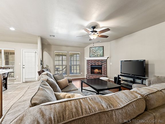 The game room upstairs, which has a separate HVAC system, could be converted into a 4th bedroom. Full brick home with ONE OWNER SINCE 2011. Highly desirable greenbelt lot in Jenks Schools. Updates in the past few years include NEW roof, flooring, SS kitchen appliances, etc. Three large bedrooms and functional closet space throughout. Wonderful covered/screened-in patio overlooking the peaceful backyard. Well-established neighborhood in Jenks that is conveniently located close to Jenks West Elementary and Intermediate Schools, South Lake Golf Course, Tulsa Hills Shopping Center, Turkey Mountain Park, etc. Very clean and well maintained.