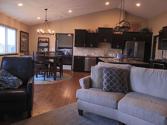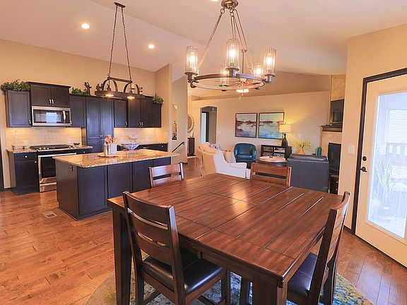 This beautifully landscaped 3234 sq. ft. home is a zero entry with vaulted ceilings and a full walk-out basement situated in a great neighborhood with a stocked pond. Located near the K15 and Webb Rd intersection, close to schools, sports complex and Rec Center. This home is great for entertaining or relaxing. The kitchen on the upper level has granite countertops and a huge 5x7 island. In addition to the large walk-in pantry, the kitchen includes an abundance of drawer and cabinet space. Enjoy the large 10ft x 20ft deck, with stairs leading to the serene backyard. There are three bedrooms upstairs and two bedrooms down with one downstairs possibly doubling as a second master suite with double sinks and a shower room. Then wander into an incredible entertainment/living room with a second, full kitchen and walk-out to the back and beautifully landscaped paradise with a fishpond and waterfall. Backyard features a large 18’ x 24’ slab that could be used for seasonal above ground pool, basketball pad, or whatever you desire. The back yard is fully fenced with a custom 8ft good-neighbor tongue and groove cedar fence, providing privacy for your escape. This house offers tremendous entertaining features. All rooms have custom blinds and a remote control for the stairway window blind. The three-car garage is fully finished with a side, walk-thru door. There are tremendous amounts of storage throughout the house. There are too many details to list so schedule your tour today!