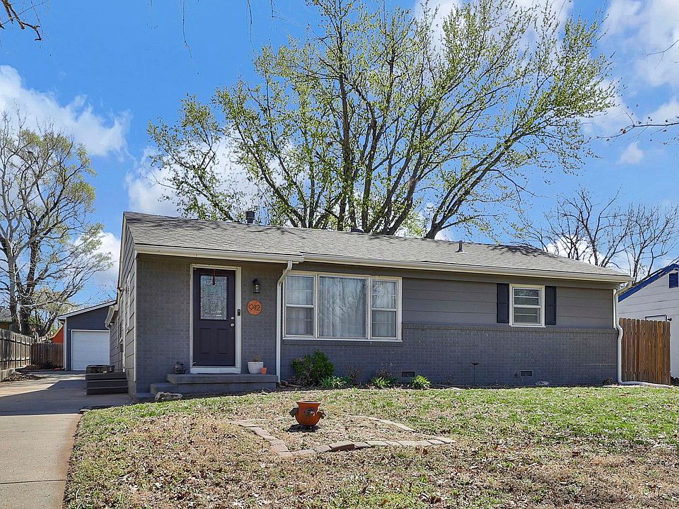 Situated opposite the park in Derby, this ranch-style home offers a blend of modern comfort and timeless charm. Adorned with white enamel trim, the home boasts three spacious bedrooms and an updated bathroom conveniently located off the living room. The kitchen showcases newer countertops, cabinets, and stainless steel appliances, complemented by a sizable pantry. A generously sized family room, complete with a separate laundry area, has been tastefully updated with newer flooring, some new windows, and paint. Additionally, a dedicated room with storm shelter access provides versatile storage options. Outside, the fully fenced yard encompasses a detached oversized two-car garage. Home has a newer roof. Don't miss the opportunity to explore this captivating home!