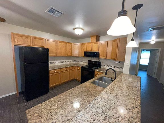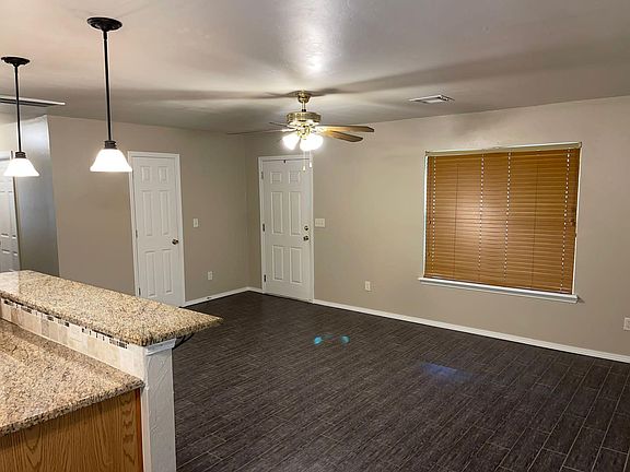 HANDICAP ACCESIBLE 3 bed 2 bath home (almost 1300 sqf) FOR RENT, ENERGY EFFICIENT w/ GEO THERMAL A/C and Heating . Outdoor concrete STORM SHELTER w/concrete patio and Tuff Shed storage. 2 car garage. Neighborhood Park with playground. Granite countertop and stone back splash in kitchen, new low profile microwave. Tile flooring throughout. Walk in closet in Master Bedroom. Close to Broadway Extension, a short distance from Edmond and easy access to Downtown OKC. Very close to I-35, hospitals , Penn Square Mall , right next to new attractions Chicken and Pickle and Flix Brewhouse Luxury Movie Theater. WASHER and DRYER included. No smoking. Washer and dryer included but owner is not responsible if they stop working. Owner is not responsible for landscaping.