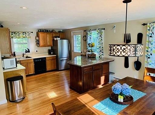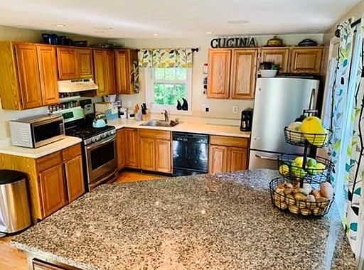 Come relax in the beautiful seaside community of Marion. This lovely home in East Marion boasts 3 bedrooms and 2 full bathrooms. Wood floors compliment the first floor, newer stainless steel appliances in the kitchen with a beautiful granite countertop island to entertain guests! Built in Bluetooth surround sound system in first floor living areas. The living room includes a fireplace to keep cozy in winter. A bonus space abuts the living room that can be used as a home office or family room. Upstairs the bedrooms have wall to wall carpet and second full bathroom. Walk in master closet and closet systems in the other bedrooms. Enjoy an extra 408 square feet of space in the finished basement to relax or make as a gaming or play room. Landscaped outdoor patio area for entertaining. Property includes beach rights to Silvershell beach and is close to Tabor Academy and Route 195. This gem won't last! No showings scheduled until the open house Saturday.