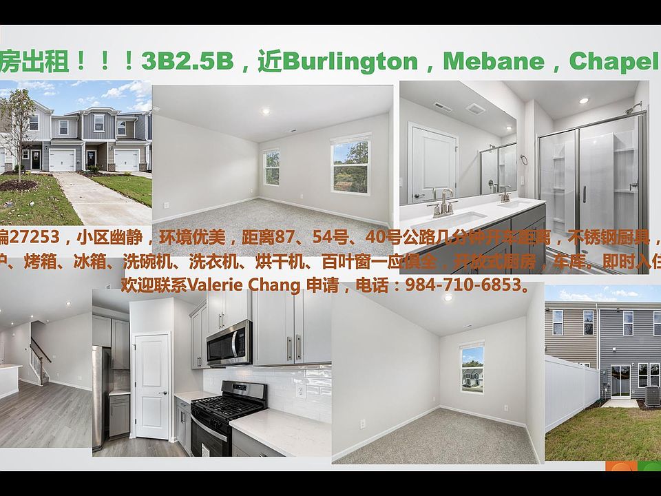 Move in ready! Water, gas, electricity are all ready! AT&T fiber is ready! Clean and prepared for your move-in ready! Open floor plan with fenced backyard. You will have tons of natural sunlight brightening the home! Fenced yard is ideal for your teenage kids to have fun or couples sipping coffee in morning tranquility or evening harmony! Beautiful new construction home located in great location, minutes driving to I-40, I-85, 10 minutes driving to to Burlington, Mebane, 30 minutes from Chapel Hill, with access to shopping, restaurants, and schools, etc. This astounding townhome is feature with 100% percent new SS appliances, new washer and dryer, Costa Clara Cloud kitchen back slash, white quartz countertop, open floor plan enables you to talk with your family even when cooking. The first floor is elegant EVP flooring, clean looking and easy clean. Fenced backyard keeps your privacy when you enjoy your morning coffee on back patio or embrace the breeze in fall evenings. Spacious master bathroom, spacious walk-in closets. The last but not the least important, it is energy efficient! This is your ideal home! And do you know what 1888 means? It means let's make fortune together!