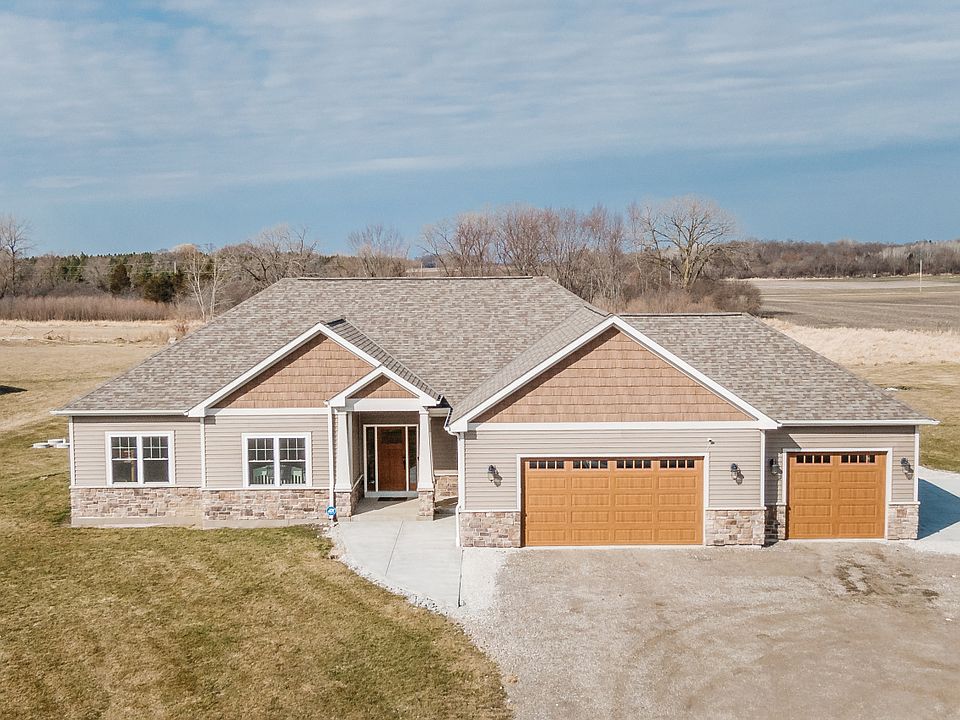 Looking for that newer sprawling ranch on acreage? You found it! This 3 BR home is situated on a quiet rural road perfect for walking or riding bikes, but is close enough to stores, restaurants and schools. Located on over 3 acres, your new home offers a very open floor design with soaring ceilings and a beautiful backdrop of wildlife in your backyard. A floor to ceiling stone fireplace is the first thing you see when you walk inside with rustic hickory HW floors. The kitchen offers granite counters with a huge copper sink in the island.The laundry room is situated by the bedrooms for convenience. The Master BR offers a tiled walk in Rain Shower. The ceilings are 9 ft with a12 ft vault in the great room. A 40x30 heated garage is ideal to hold all your toys.