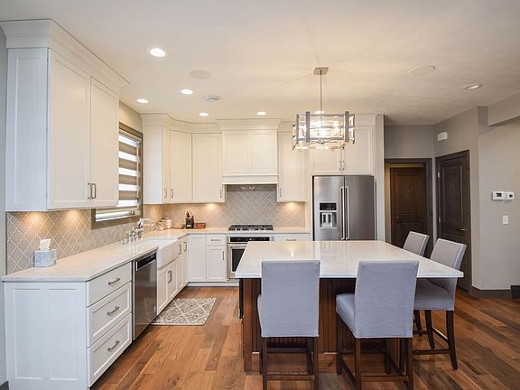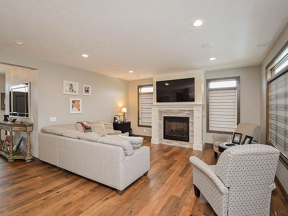 This spacious and luxurious home is perfect for renters seeking comfort and convenience. It features a golf simulator, fitness area, and a beautiful kitchen with stainless steel appliances and a large island. The main level showcases wood flooring, a cozy gas fireplace, and in-floor heating throughout for year-round comfort. Upstairs, you'll find generously sized bedrooms with walk-in closets, and the master suite offers a spa-like bath and a large closet. Outside, enjoy the heated garage, fenced yard, covered patio with built-in grill, and firepit areaperfect for entertaining and relaxing.
