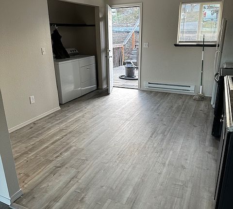 Nice 2br 1 bath apartment that has been completely remodeled with all new paint flooring counter tops sinks faucets light fixtures new hot water heater washer and dryer in the unit small storage unit included with this unit Owner pays water sewer garbage tenant pays electric this would be a month to month lease first month last month and security deposit are required to move in of$3,800.00