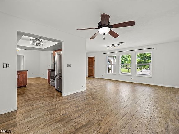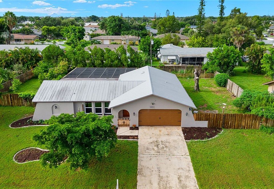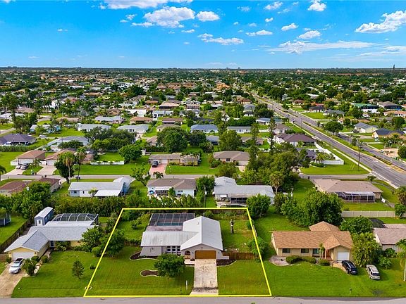 This TRIPLE LOT SE Cape Coral POOL HOME offers 3 bedrooms, 2 bathrooms, and a large, unique lanai with arches and a tongue-and-groove ceiling—one of only two like it in the area. Located in a NO FLOOD ZONE, this home has been STORM TESTED by two hurricanes, including Ian, with minimal damage, thanks to significant upgrades. These include a METAL ROOF (2018), newly framed and screened lanai with new drainage and gutters, IMPACT WINDOWS & DOORS, a wind-rated garage door, and a new hot water heater. These enhancements provide exceptional storm durability, making this property a smart investment in a post-Ian community. The home is also equipped with newer appliances and an AC unit installed in 2014. No HOA, and all assessments are paid in full. Conveniently located near shopping, restaurants, and grocery stores, this property is perfect as a primary residence, second home, vacation retreat, or investment opportunity. Schedule your showing today!