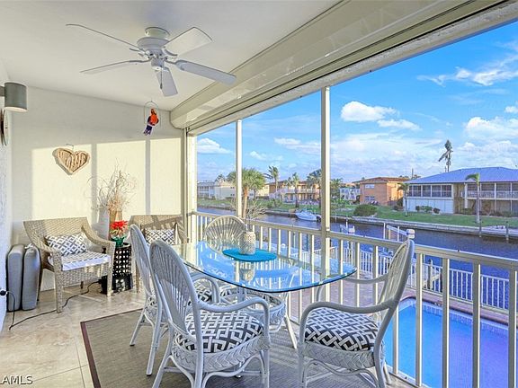 RARE OPPORTUNITY WITH GULF ACCESS FEATURES A AVAILABLE ASSIGNED BOAT DOCK TO YOUR UNIT which is ready for the new homeowner's customization and installation! This large (1250sq ft) Southern Exposure canal front condo is a boater's dream! Featuring an OPEN and INVITING Floorplan with a BONUS ROOM, BRAND NEW A/C, and NEW Full STAINLESS STEEL APPLIANCE suite that will surely make your family and guests feel instantly right at home. Then you can enjoy the great views from your second-floor screened lanai of the quiet pool and serene canal with boat traffic moving by. The complex has only 6 units with easy-going bylaws allowing all kinds of possibilities for the new owner. The building is well maintained with a newer metal roof installed two years ago and the exterior is set to be repainted in February. Villa Grande I Condominiums Assoc is in the perfect location. Just minutes from the shopping and dining areas in downtown Cape Coral and a mere 10-minute boat ride to the open water of the Caloosahatchee River. This is a MUST-SEE. Book a showing today!