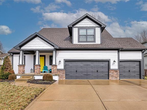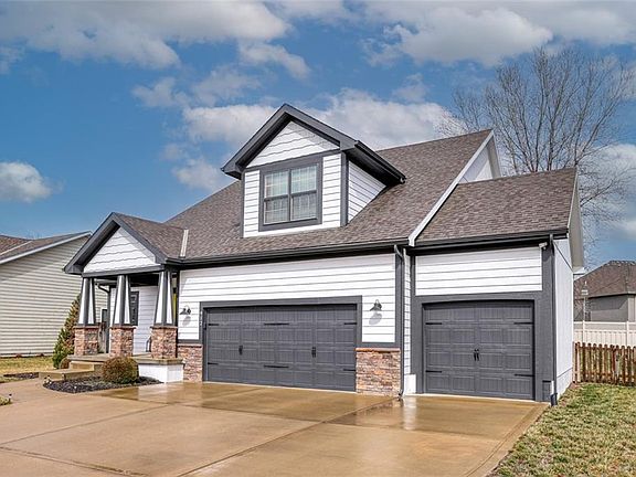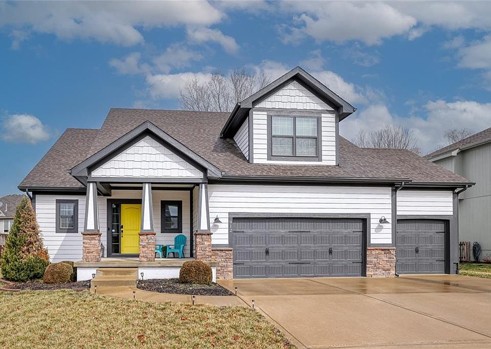 Stands out in a crowd!! This lovely 3 bedroom, 3.5 bath open concept 1.5 stories home features wood cabinets & a large kitchen island/breakfast bar with contemporary granite countertop & decor, and a wall of windows opens up the home to the fully fenced backyard. Step outside to the lovely covered patio, perfect for grilling & outdoor eating. Enter by the front door & you'll find a half bath & wonderful office space. Enter from the spacious 3 car garage & find a convenient built-in halltree & storage perfect for storing everyday items as you arrive home. The home also features a large first floor main bedroom suite with dual sinks, large closet & gorgeous step-in shower; two bedrooms & a full bath upstairs. An amazing amount of space in the partially finished basement (with full bath!) which can be used just as it is for game or media room or add a bedroom with egress window & you will still have plenty of storage space for holiday decor, toys, keepsakes etc etc. Hardwood & carpet throughout the main floor living space, now offering $4000 flooring allowance. This is a truly lovely home with great use of space and ideally located near schools, stores and with easy access to highways.