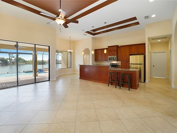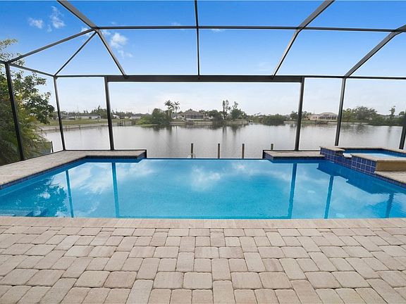 ***HUGE PRICE ADJUSTMENT*** Back on market because of Buyer issue - no home inspection was even held. Beautiful lakefront home with all of the bells & whistles. Infinity pool w/spillover spa overlooking the lake and your private concrete dock. Soaring ceilings throughout, granite kitchen & baths, triple slider from living room, double slider from Primary suite, 36' under truss lanai AND screened pool deck. Primary suite has bath with dual sink vanity, luxurious soaking tub, massive shower with rain head, linen closet AND 2 oversize walk-in closets. Office with half bath. Formal entry, formal dining room AND kitchen with island breakfast bar AND breakfast nook with picture window overlooking the infinity pool & lake beyond. Explore miles of freshwater canals & lakes with your boat that lives at your own private dock. Irrigation to keep the outside pretty. Hurricane shutters for when the storms do come. INFORMATION IS EXPECTED TO BE ACCURATE BUT BUYERS SHOULD ALWAYS PERFORM THEIR OWN DUE DILIGENCE.