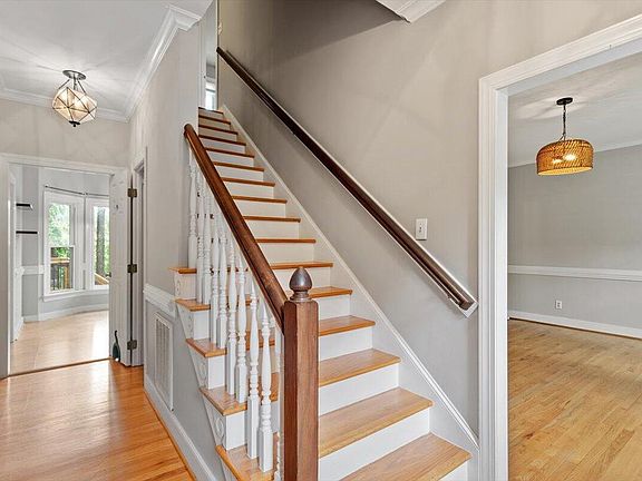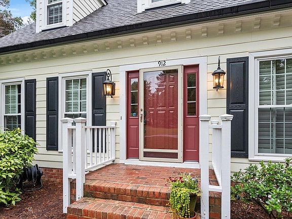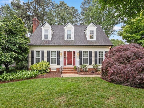 Tucked into one of Raleigh's most convenient pockets—with no HOA—this updated Cape Cod has been completely dialed in. From the street, it already stands out with beautiful landscaping, fresh HardiPlank siding, and a wide front porch that gives it classic charm. Inside, the layout is warm and functional with real hardwood floors, smooth ceilings, crown molding, and recessed lighting. The kitchen features granite counters, gas cooktop, stainless appliances, and great flow into both the breakfast nook and dining room. The family room spans the entire width of the house and centers around a wood-burning fireplace, offering plenty of space to spread out and get comfortable. Upstairs, the primary suite has been totally transformed with a gorgeous new bathroom—double vanity, custom tile, upgraded fixtures, and a calm, spa-like feel. All three bedrooms are up, and the laundry is right where it should be—no hauling baskets up and down the stairs. But the real magic is out back. A huge deck leads down to an oversized patio with extensive hardscaping, and the fenced backyard is incredibly private—lush, established, and beautifully maintained. There's space to entertain, garden, or just relax in peace. The whole property feels intentional and well cared for. No HOA means freedom to make it your own, and you're just minutes from parks, shops, 540, and everything North Raleigh has to offer. If you've been waiting for something turnkey with real charm and zero compromises, this is the one.