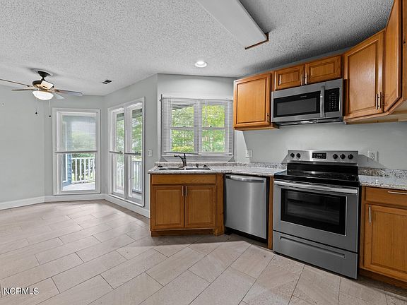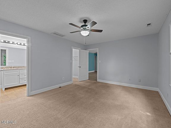 Welcome to this charming 3-bedroom, 2-bathroom home nestled in the desirable Fairfield Harbour neighborhood of New Bern. As you enter onto the inviting front porch, you'll feel right at home. Inside, the split floor plan offers both privacy and functionality. To the right of the entryway is a formal dining room, perfect for hosting gatherings. To the left, you'll find a well-appointed kitchen featuring stainless steel appliances, ample cabinet space, and a cozy eat-in dining area. The spacious living room, complete with a fireplace, provides a warm and inviting space for relaxation. The owner's suite is a true retreat, boasting a large walk-in closet, dual vanity sinks, and a beautifully tiled walk-in shower. Two additional bedrooms and a full bathroom complete the interior layout. Head outside onto the deck, where you can enjoy the tranquility of your private backyard. This home is conveniently located just a short drive from Historic Downtown New Bern and Carolina East Medical Center, making it an ideal place to enjoy the best of both comfort and convenience. Call us today to schedule your private tour.