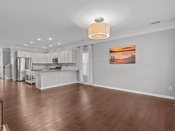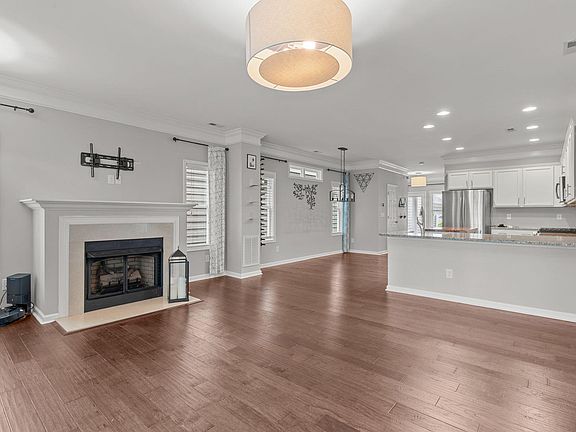 LIVE, WORK, and PLAY in the Villages of Apex. Unique and beautiful Charleston style home with an open floor plan. Engineered hardwoods welcome you in the living room and travel throughout the first level. Cozy up to the gas fireplace as you relax and drink your coffee or wine. Kitchen includes granite countertops, farmhouse sink, stainless appliances, and expansive walk-in pantry. Primary bedroom with vaulted ceilings, dual vanity, and walk-in closet. Third floor bonus or fourth bedroom with full bath! Private backyard with easily maintainable turf, covered porch, and stone patio. Detached garage with additional storage. Pool, playground, and fitness center included in neighborhood amenities! Walking distance to breweries, grocery stores, & Downtown Apex. Hop on HWY64, 540, 20 minutes to RDU or DT Raleigh. Tankless water heater, updated exterior paint 2022, roof replaced 2021.