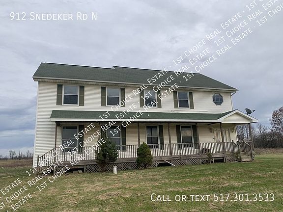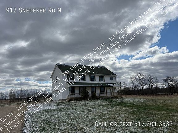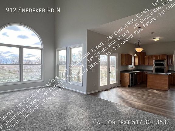 4-bedroom, 3-bath, 2-story home, built in 2002. 2.64 acre lot. Brand new flooring & fresh paint throughout. Brand new roof. Front door opens to a foyer with glass French doors to an office. Open floor plan with vaulted ceilings and a sandstone fireplace in the great room. Arched windows overlooking acres of wilderness. Kitchen was remodeled in 2008 with oak cabinets, large pantry, wine cooler, with cook top island for lots of counter space and newer appliances. The upstairs features an extra wide hallway leading to 4 bedrooms and the laundry room (washer/dryer NOT included). Spacious master bedroom with an en-suite bathroom and walk-in closet. 2.5-car attached garage. Large back deck overlooks acres of private land. Located in the Dansville School District. This house is on a dirt road. Pet friendly (limit 2). $300 non-refundable pet fee. $25 monthly pet fee. No smoking allowed. Tenant pays all utilities (property is heated with propane, DTE electric, well water). Property does have a water softener (tenant is responsible for maintaining salt levels in the water softener). Tenant is responsible for lawn & snow maintenance. $40 non-refundable screening fee per applicant over the age of 18. Credit check will be ran. Security deposit will be 1.0-1.5 times rent depending on application score. Minimum credit score (VantageScore 3.0) of 620 required. 12-month lease required. NOTICE TO ALL POTENTIAL APPLICANTS: All applicants are required to complete the pet screening process, through a third party vendor - Pet Screening. The screening process is required for all applicants, regardless of whether or not applicant has an animal/pet. Please visit this link to complete your Pet Screening profile, after you have applied to rent a property. https 1stchoicerealestate. 2.5 Car Attached Garage Cathedral Ceilings Central Air Front Porch Large Lot Washer/Dryer Hook Ups