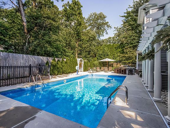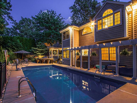 PRICE REDUCED stunning and spacious custom built home starts with the grand entrance of a two-story foyer with curved staircase that towers the hallway to an open flow: living room, dining room, family room with gas fireplace and built-ins. The gourmet kitchen offers granite counters, center island with Jennair stove and huge built-in buffet. First floor also includes bedroom with full bath, guest half bath, and mahogany billiards room featuring parquet floors, wet bar, fireplace, custom bookshelves and molding. Hardwood floors and French doors lead out TO Trex deck,gazebo with cable television,inground saltwater pool and Koi pond. Possible 5th bedroom on lower level does not have a closet. Lots of storage space throughout. Wine closet, exercise room, the list goes on and on.