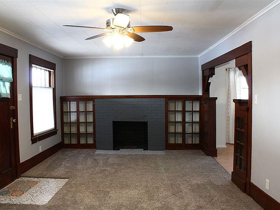 Lots of character in this 3BR home with beautiful woodwork, built in display cases/bookshelves and French doors that open to a lovely side porch. The list of NEW items this past year include: pex plumbing throughout, electrical box and wiring, carpet, paint inside & out, gutters, garage door opener, light fixtures, gutted and remodeled bath (with deep soaker tub), new kitchen countertops complete with a built in desk/work area. Kitchen appliances stay! The unfinished basement has painted walls & floors. Fireplace is decorative only.