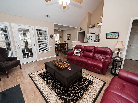 Beautiful 3BR/2BA plus bonus with features that include great room with fireplace, gas logs, cathedral ceiling, dining room with trey ceiling, kitchen with granite countertops and separate breakfast area, master BR has trey ceiling, walk-in closet and master bath has tile shower with seat, split floor plan with front bedroom having cathedral ceiling. Upgrades include laminate hardwoods throughout with new ceramic tile in hall bath, new hardwood treads for stairs leading to bonus room, all interior including ceilings have been recently painted. Very nice sunroom overlooking patio/pergola, fenced backyard and 12x14 outbuilding with electricity and gutters with leaf guard. Enjoy the neighborhood pool.
