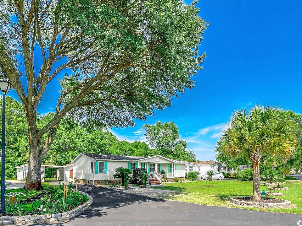 Come live the Salt Life at this beautiful home located in Murrells Inlet! Live Oak is an established 55+ community with lots of fun activities! This lovely home has a big front porch where you can sit back and relax. This is a large wooded lot with privacy in the back and several palm trees in the front. The landscaping has been well-manicured. As you come inside, you will notice an open concept with a breakfast bar, which is great for entertaining! This gorgeous home has a split floor plan with upgraded laminate flooring throughout and tile in the wet areas. The kitchen features granite countertops and an upscale onyx sink. The refrigerator has recently been replaced along with the microwave and the washer/dryer. All of these appliances shall convey. The cabinets have recently been painted and new hardware was added. There is a solar tube near the dining area, which provides a romantic moonlit glow for dinner. The master suite has a big closet and a walk-in shower. There are skylights in both bathrooms which provide a lot of natural light. There is a spacious Carolina room with a wooden ceiling. This is the perfect place to enjoy a good book. This home has been very well maintained. The hot water heater was replaced in 2022, the driveway was resurfaced, fresh paint was added inside and out, the new Rheem HVAC system was added this year, gutter guards were put in, and a vapor barrier was installed in the crawl space. There is a huge outdoor workshop with a carport. Owners can have motorcycles, golf carts, and up to two pets with approval. There is a community clubhouse with an outdoor pool and a hot tub. The neighbors meet there for potluck dinners, card games, and bingo! Live Oak is conveniently located near the Famous Murrells Inlet Marshwalk, Surfside Beach, and Garden City! There are tons of delicious restaurants, award-winning golf courses, and several places to go shopping. This is truly a one-of-a-kind home and you don't want to miss out! Schedule your showing today. Square footage is approximate and not guaranteed. Buyer is responsibility.