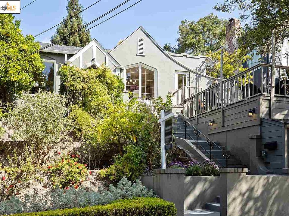 Crocker Highlands Tudor elevated by garden setting. Vintage-effect refurbished kitchen and two full bathrooms blend with 1920's arch-motif architecture embellishing living and dining rooms. Three bedrooms above; lower-level designated home office benefits from adjacent bath and entry. Step from dine-in kitchen to dine-al-fresco deck amid hushed, leafy surroundings. Wonderfully walkable to everyday everything. Three houses away to catch the B-Bus with direct service to San Francisco. Five houses away from Trestle Glen to stroll to the shops and dining on Lakeshore/Grand Avenues plus the very popular Saturday Farmer's Market.