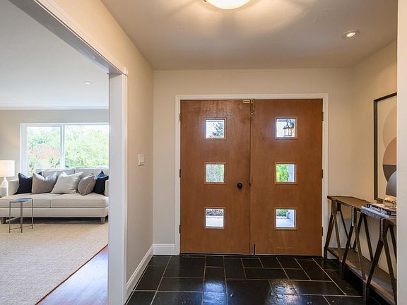 The formal entry way greets you in a way that says welcome home. The formal living room enjoys picture windows overlooking the bay. The living room has a custom walnut bookshelf with extra storage. Adjacent to the living room is a beautiful and chic dining room. The kitchen and family room both overlook the private yard. The remodeled eat-in kitchen has white cabinets, granite counters, a gas range and stainless appliances. The counter peninsula with seating is the perfect place to chat while cooking. The family room has hardwood floors, gas fireplace and access to the yard. The bedroom wing includes 2 bright and nicely sized bedrooms with a shared bath. The additional master suite includes 2 closets and a beautifully remodeled contemporary bathroom. Outside enjoys the perfect spot to spend your warm summer evenings. With a large hillside, enjoy the meandering paths and enjoy a quiet moment to sit and reflect on lifes bounty while enjoying breathtaking bay views.