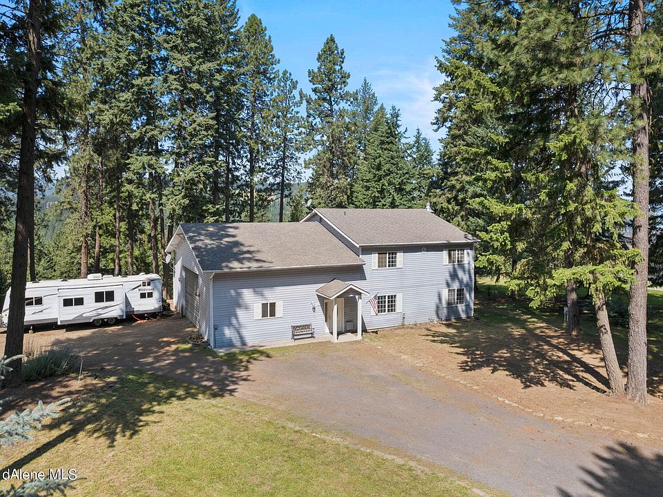If living in a highly regarded neighborhood sounds appealing, then put this opportunity at the top of your tour list. This lovely 4-bedroom, 2-bathroom home is perfect if you're looking to enjoy everything North Idaho has to offer and is ready for your final touches to make it your own. The property boasts deeded access to a private beach on Coeur d'Alene Lake. Enjoy relaxing views of the mountains, the nearby trees, and Coeur d'Alene Lake from your deck with access from the dining room and the master bedroom. With ample room for food prep, the kitchen is bright with creative possibilities. The peaceful primary bedroom includes a walk-in closet and a private bath with a separate tub and shower. The other three bedrooms, distributed on multi-levels for privacy, are quiet and ready for styling with a bonus room attached to the shared living space on the second floor. Attached workshop with 12' concrete floors can be used as a garage or a workspace with plenty of space!