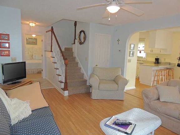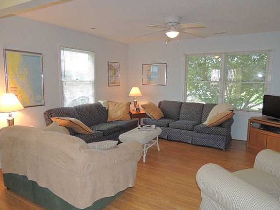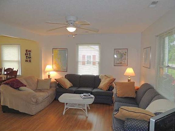 Easy WATERFRONT living in this adorable home, offering lighthouse views from nearly every room. Bright and cheery kitchen; dining area w/ french doors leading to screened porch. Laminate wood floors, cozy living room. Master bedroom on 1st level. Two additional bedrooms upstairs offering great views