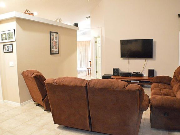 Do not miss the opportunity to own this 4 bed 2 bath single family home, located only minutes from Disney and other attractions. Entering the foyer, you can view the large family room with vaulted ceilings and tile floor throughout the home. To the right of the foyer are the first two guest rooms and full guest bath. To the left is the updated kitchen (with breakfast nook) which flows into the Dining room area. To the right is the master bedroom with en-suite bathroom. The fourth bedroom is located off the family room. This home has no neighbors to the back (large retention area) and to the right (Wooded area). The back yard is fully fenced. There is a community pool, and Tot Lot areas. This home is not zoned for short term rental.