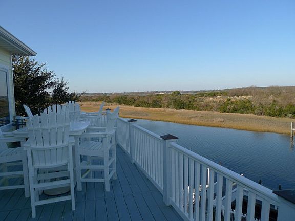 Spectacular deep water home, just a few hundred feet from the Intracoastal Waterway. Located in Surf City, this awesome home features over 4600 feet of living space and over 100 feet of docks at the end of the canal. Enjoy water views for miles down the ICW from the spacious back porch. A new dock and gazebo area was added in 2012. A true boater's paradise, complete with dock, lift and private boat ramp. Home was built by a general contractor for his personal home, the property is exceptionally well suited for the coastal environment with hardiplank siding, high-wind windows, and standing seam roof. Interior features include dramatic floating staircase, great room with walls of windows that bring in the water views, chef's kitchen with gas range, vent hood, granite countertops, and custom cabinetry. Elevator makes it a breeze to travel between all 3 living levels. Extensive landscaping throughout the property, and the highlight of the backyard is the gas firepit, perfect for enjoying an ambient evening by the water. Downstairs features a second full kitchen. Enjoy all the best of waterfront living on Topsail Island.