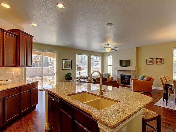 Own this captivating, structurally-sound, Saddletree Ranch Patio Home in Cordera. The 4 bedroom, 3 bath ranch features a drought-tolerant, landscaped, water-conserving fenced backyard The open floor plan is on both the main level & the finished basement. There is a unique-shaped granite kitchen island, a fireplace in the living area, & speakers in the ceiling. Main floor master bedroom connects to a luxurious 5-piece master bathroom with walk-in closet. Flexibility for an office or extra bedroom is on the main floor. Main level is a mix of dark wood & carpet. Finished basement can be intimate & cozy or ideal for entertaining; it has 2 bedrooms & a 3rd bathroom off the living area. Unfinished area in the basement contains possibilities with a window, pre-plumbing & pre-wiring. The oversized 2-car garage can be used for extra storage or a carpenter's space. The driveway faces south which is a plus! Home inspection done in 2016. The house brought in a rental income of $2400/month.